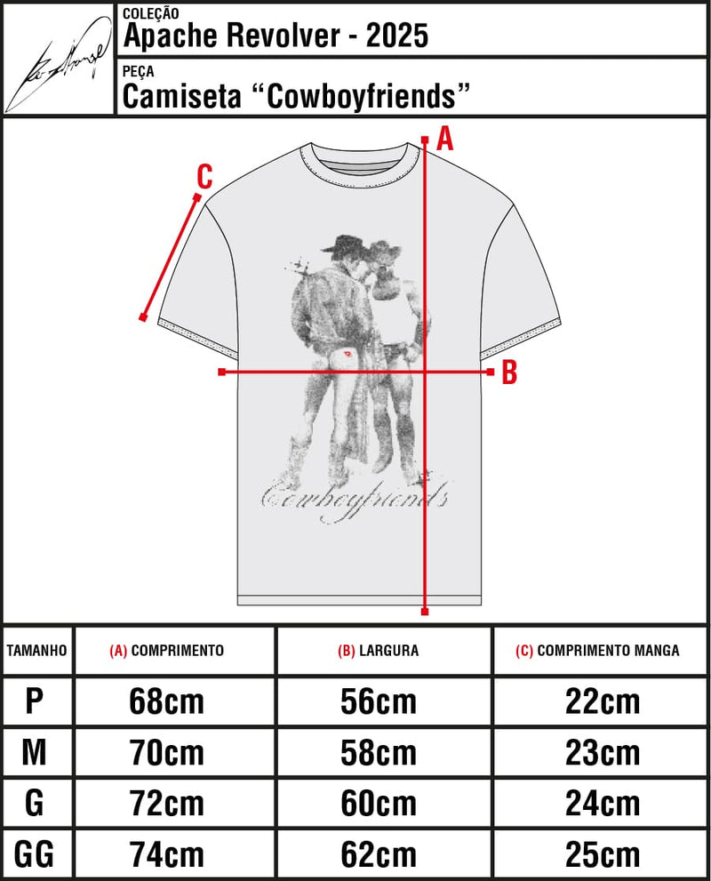 A Cowboyfriends T-shirt é confeccionada em malha 100% algodão de 240 GMS pré-encolhida.