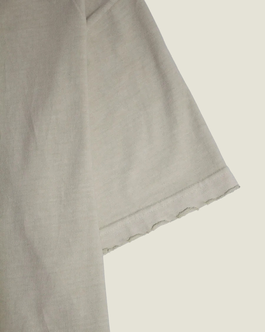 Possui modelagem relaxed com ombros rebaixados oferecendo caimento amplo, gola de 2,5cm além de detalhes puídos em suas mangas e barras. Apresenta estampa frontal em Silkscreen.