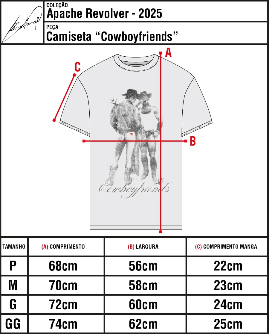 A Cowboyfriends T-shirt é confeccionada em malha 100% algodão de 240 GMS pré-encolhida.