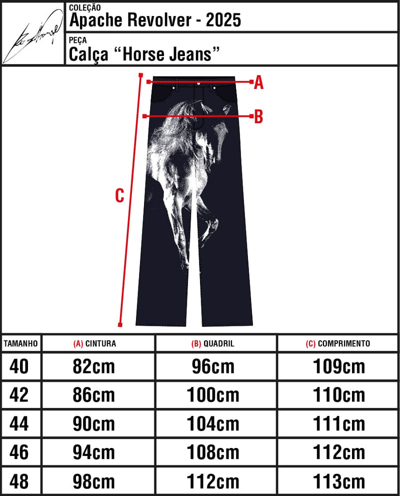 Horse Jeans é confeccionada a mão em jeans cru 100% algodão de 12oz.